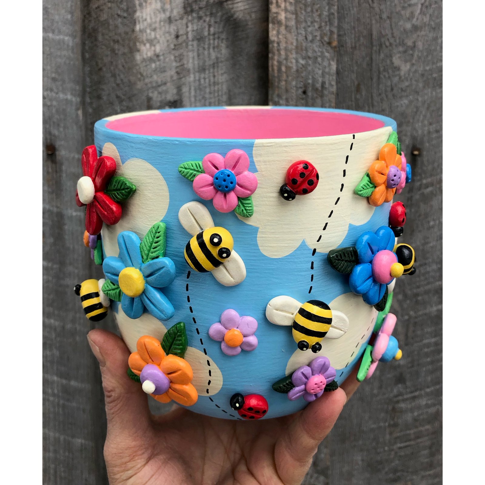 CRAZY for SPRING series - Bees, Flowers and Ladybugs Clay Sculpture Planter