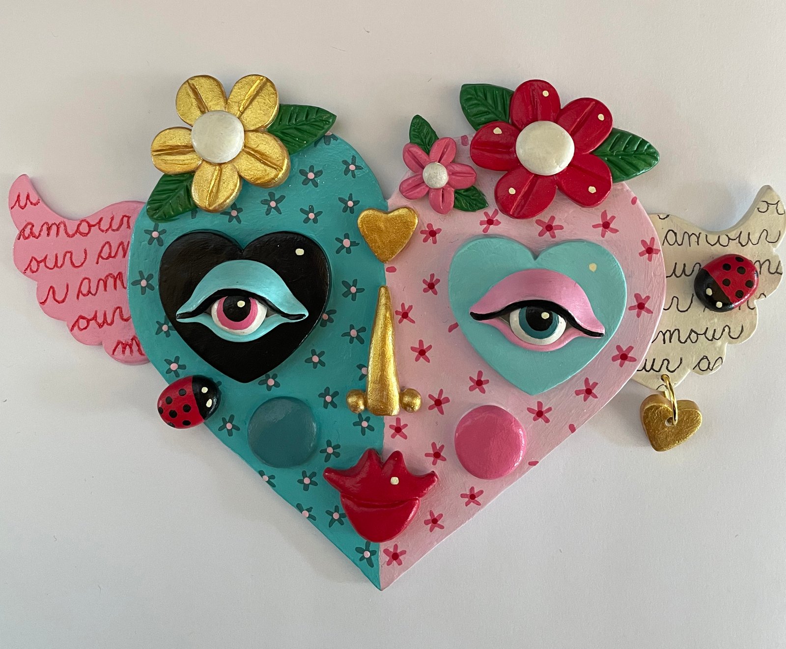 I LOVE MOI series - Large Heart Face 5" x 7" clay sculpture